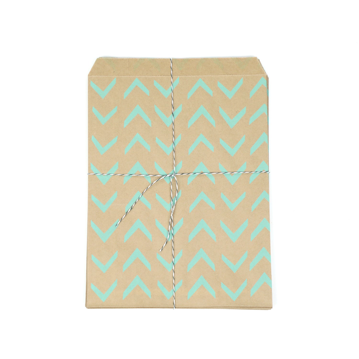 Complete your party favours with this pack of 10 kraft paper party bags adorned with a retro green chevron design.