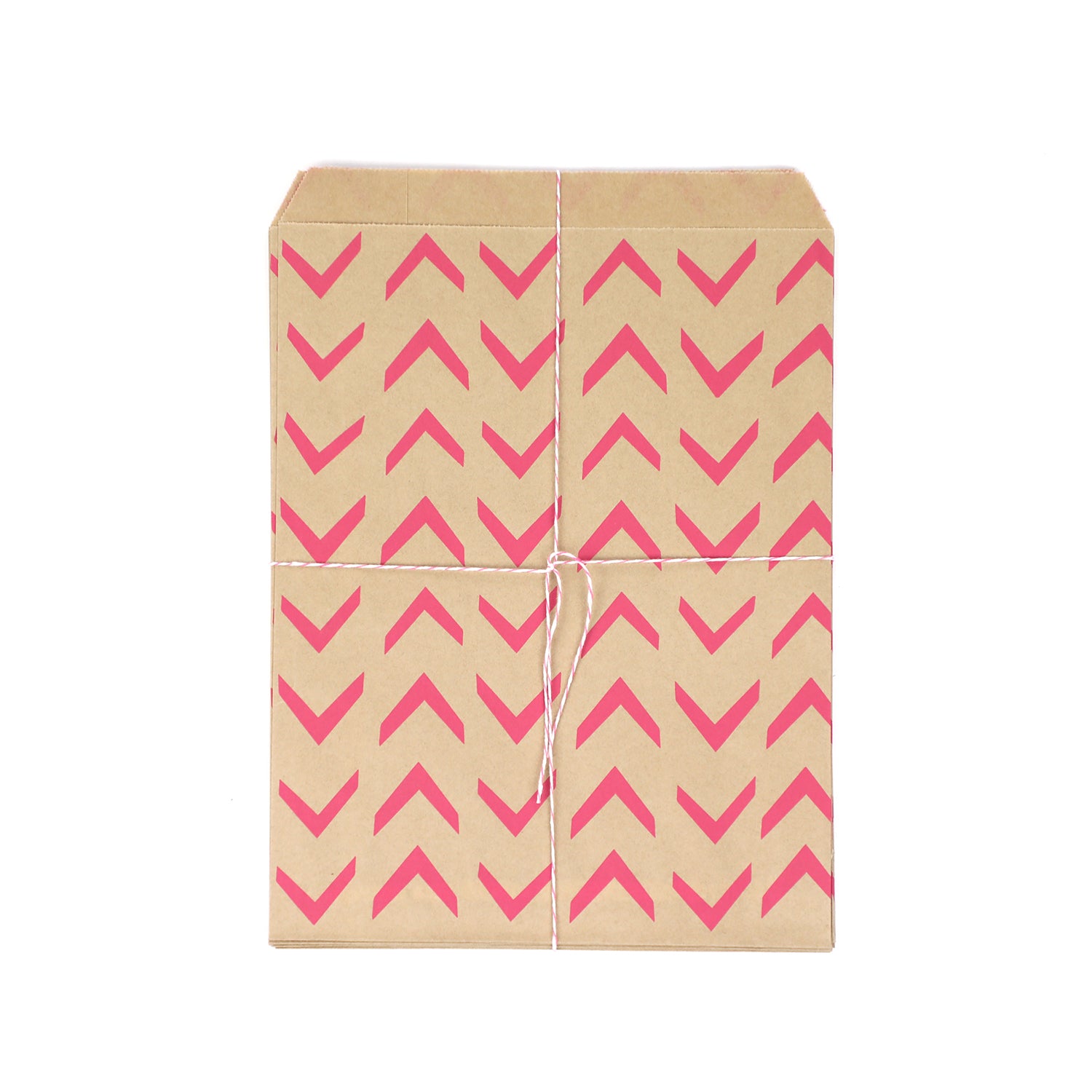 Complete your party favours with this pack of 10 kraft paper party bags adorned with a retro pink chevron design.