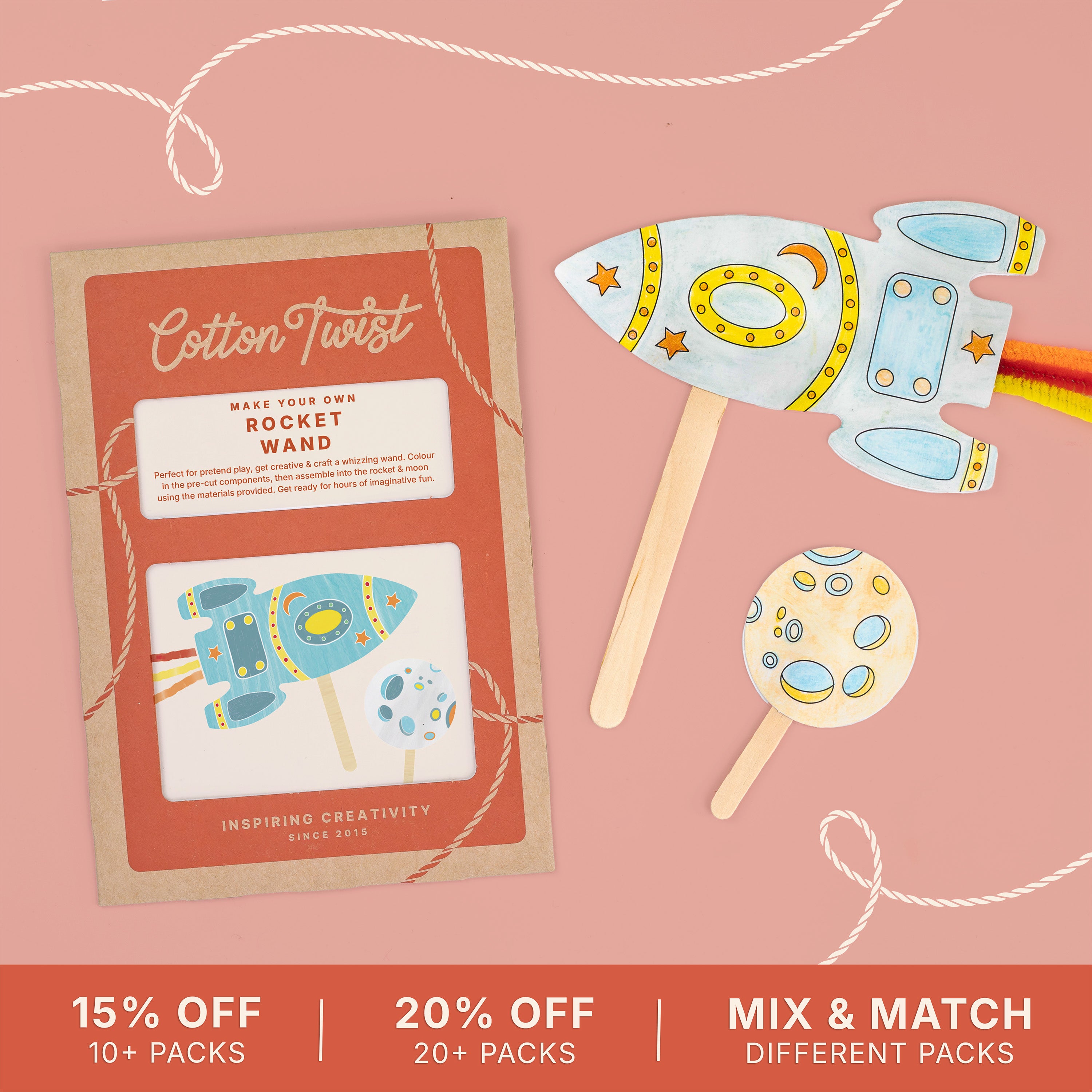 Perfect for three years & upwards, this sustainable kit would be perfect for a Space Party. Cotton Twist craft activities are often gifted as party bags, birthday presents, stocking fillers or rainy day activities.