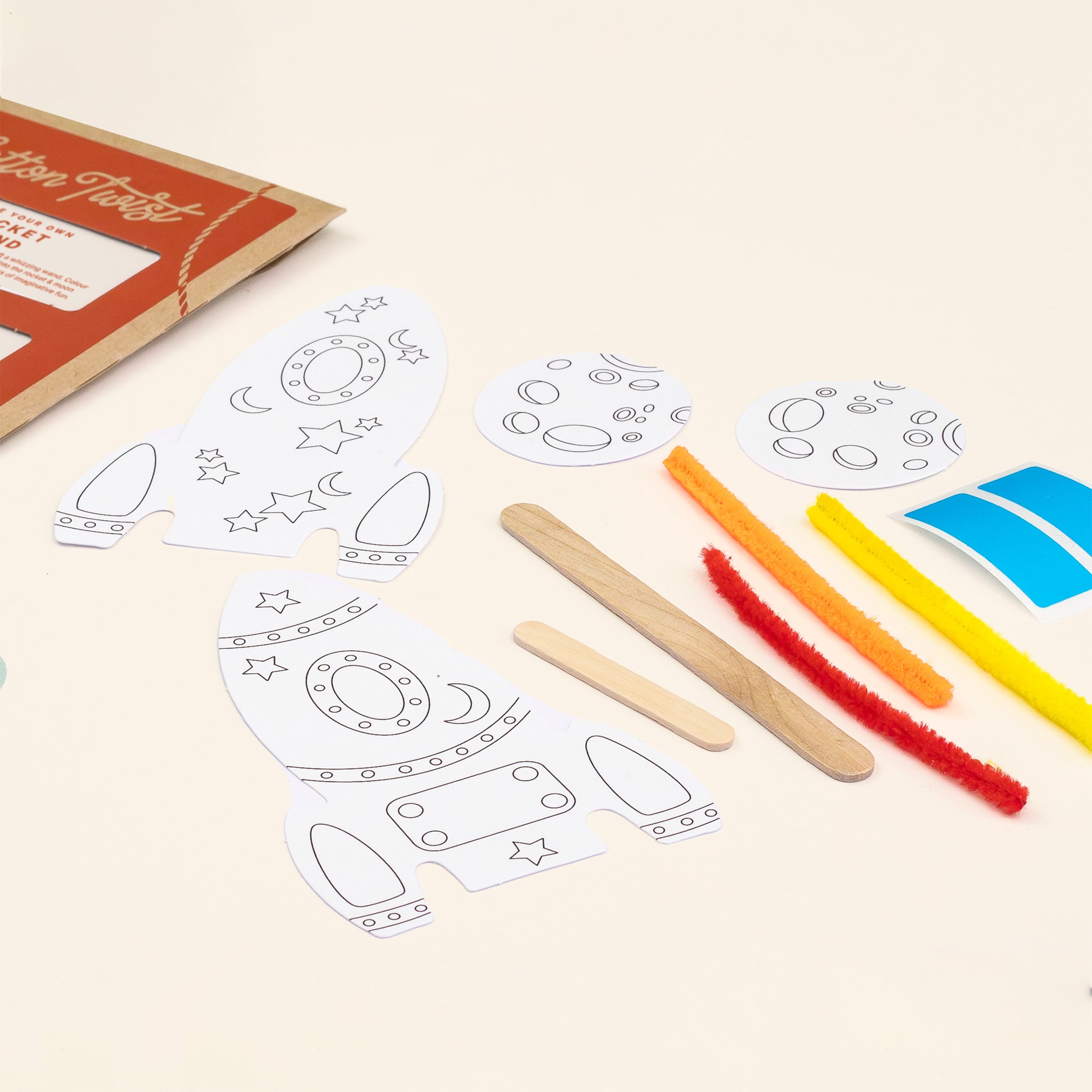 MATERIAL - rocket cut outs, lollipop stick, pipe cleaners, glue dots