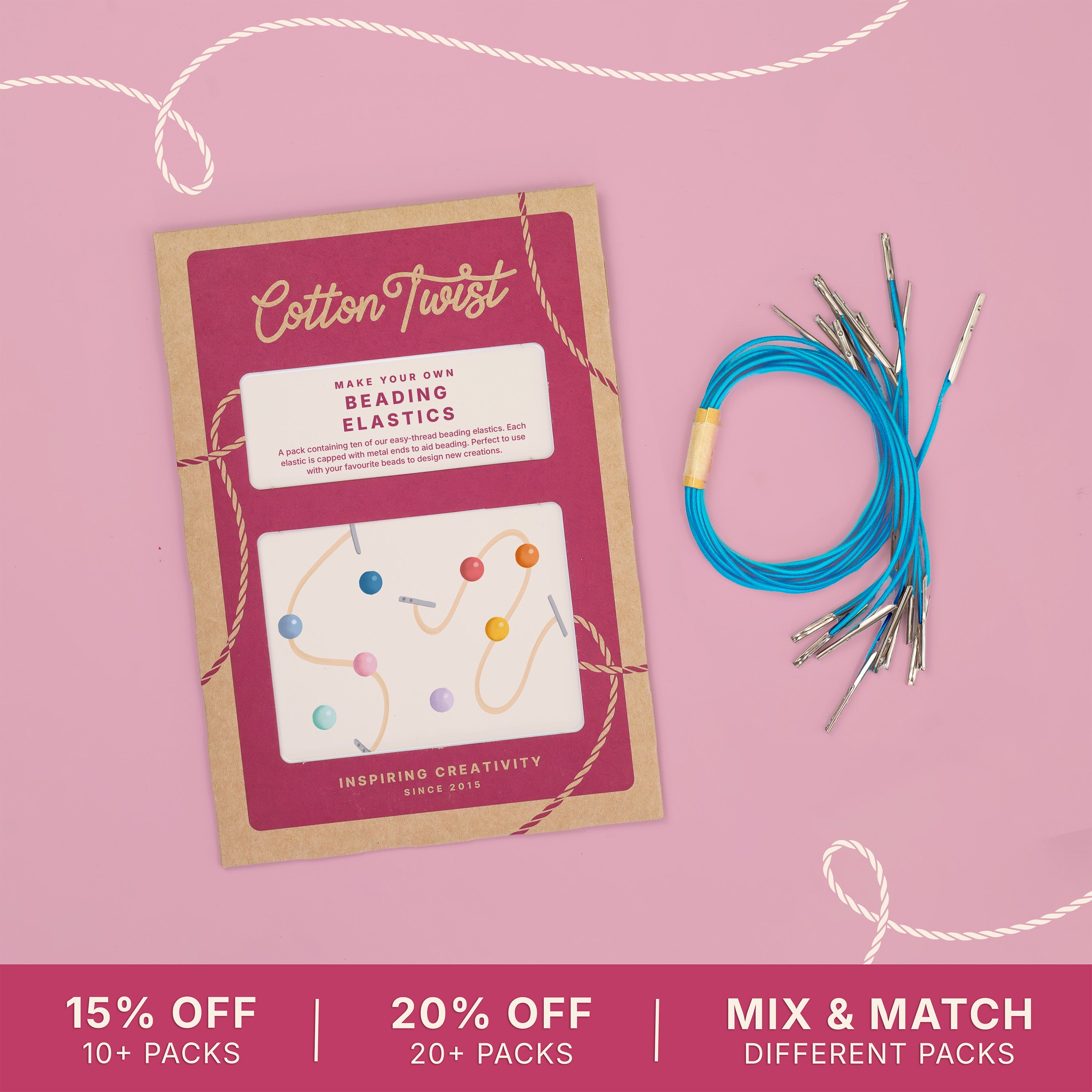 This pack can be used with additional beads leftover from our kits. Alternatively, these elastics can be used with any of your own beads from other projects. No beads are included in this pack.