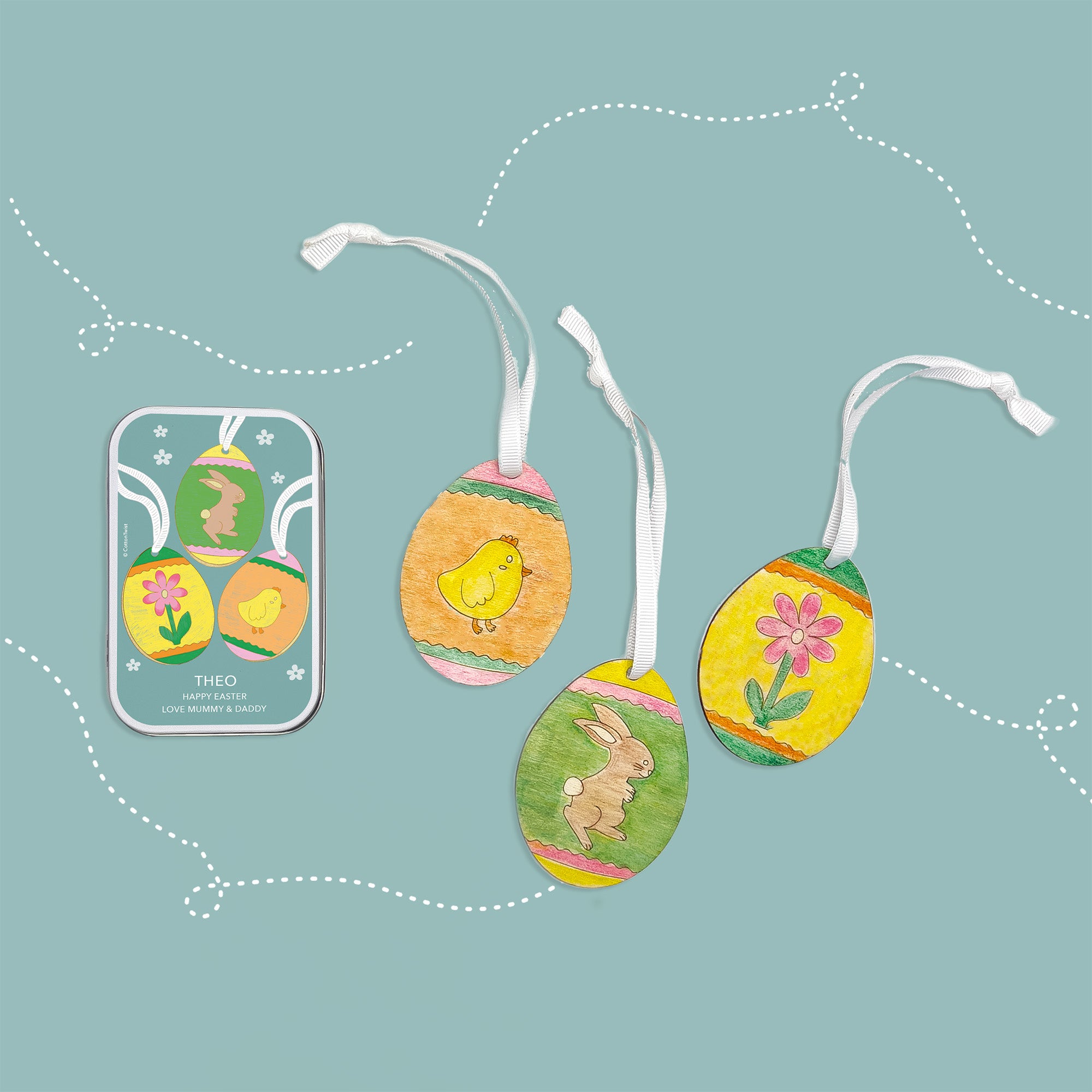 MATERIAL: 3 wooden eggs, ribbon, watercolour pencils, keepsake tin & label. UKCA/UKNI/CE tested