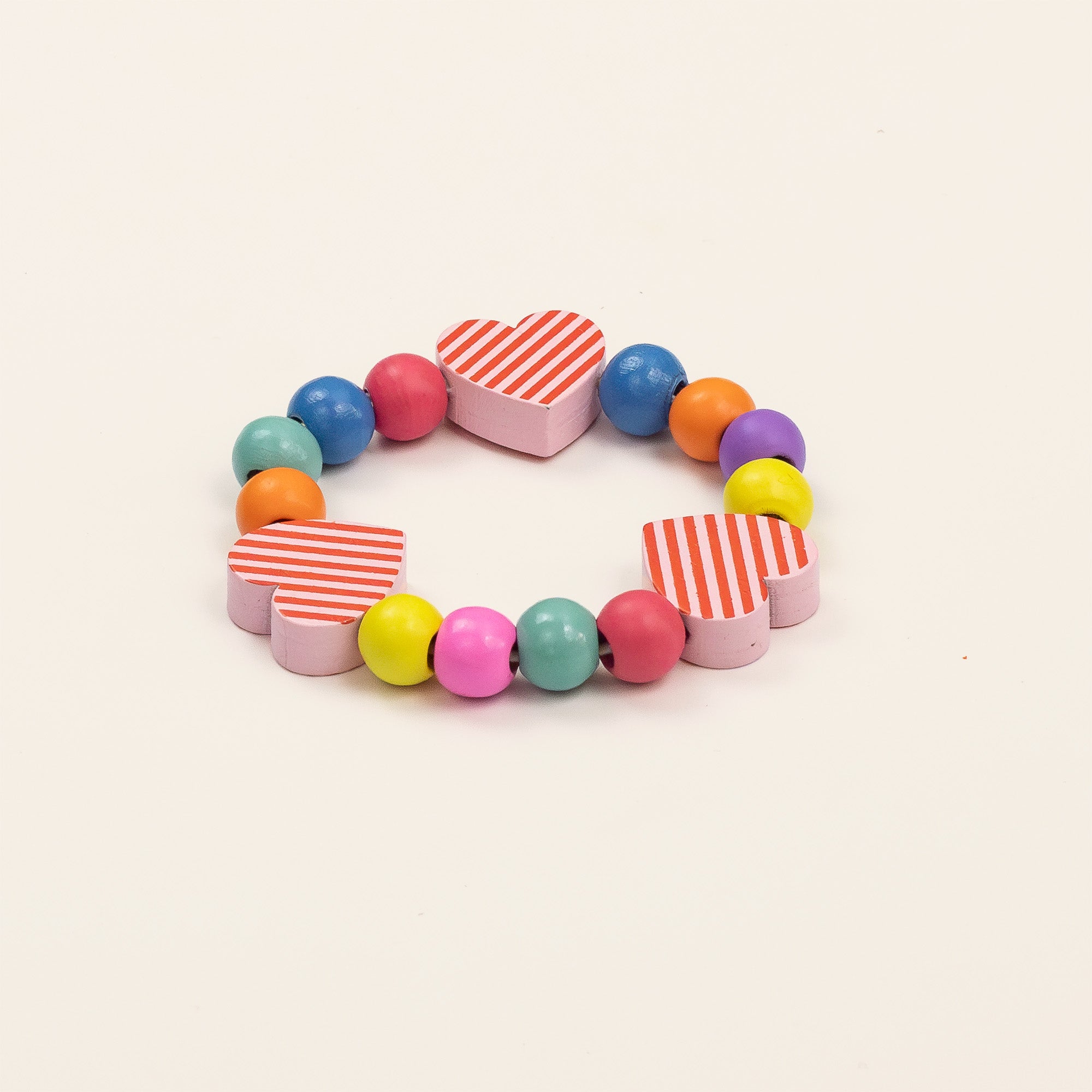 Perfect for three years and upwards, children can construct their children’s heart bracelet using the heart and spherical beads together with the elastic provided. The elastic comes with metal ends to help children add beads with ease.