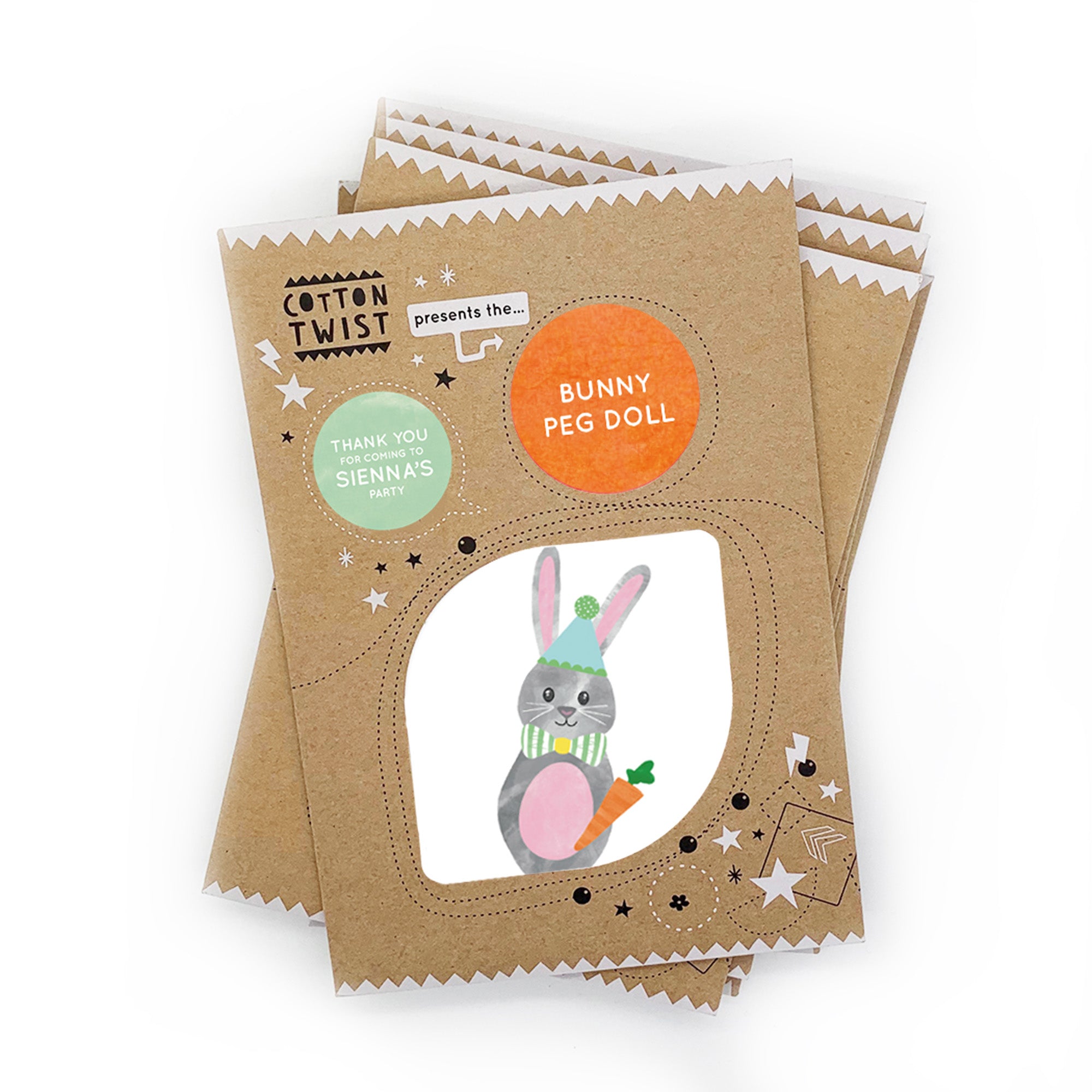 If bought in bulk for a party, there is an additional option to add personalised stickers to the outside of the kraft envelope - see images.