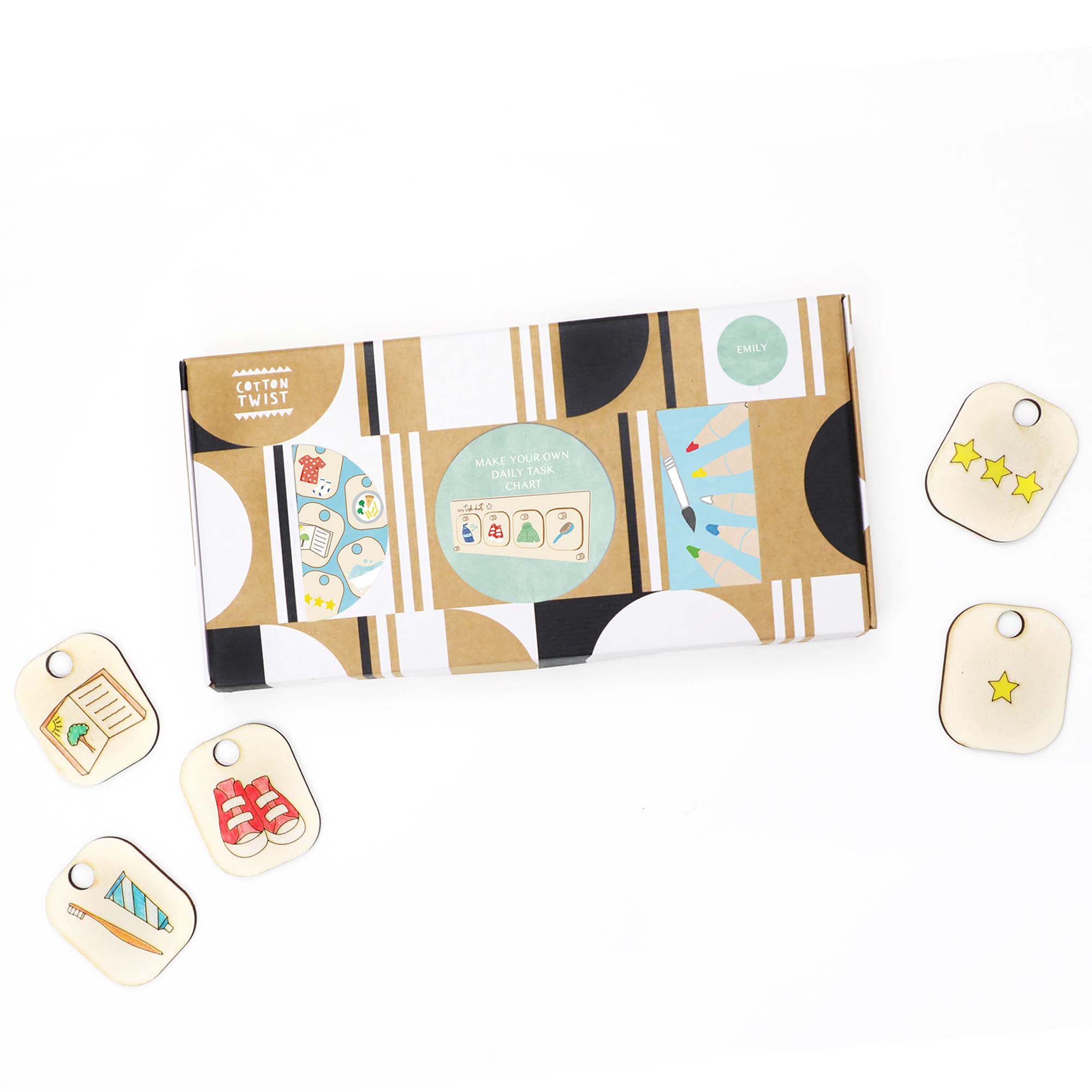 Children can colour in their task tokens using the watercolour pencils supplied in our daily chore chart for kids to create colourful images. Place the tokens on the stand to reflect the tasks your child needs to complete and reward them with the star tokens once the tasks are completed.