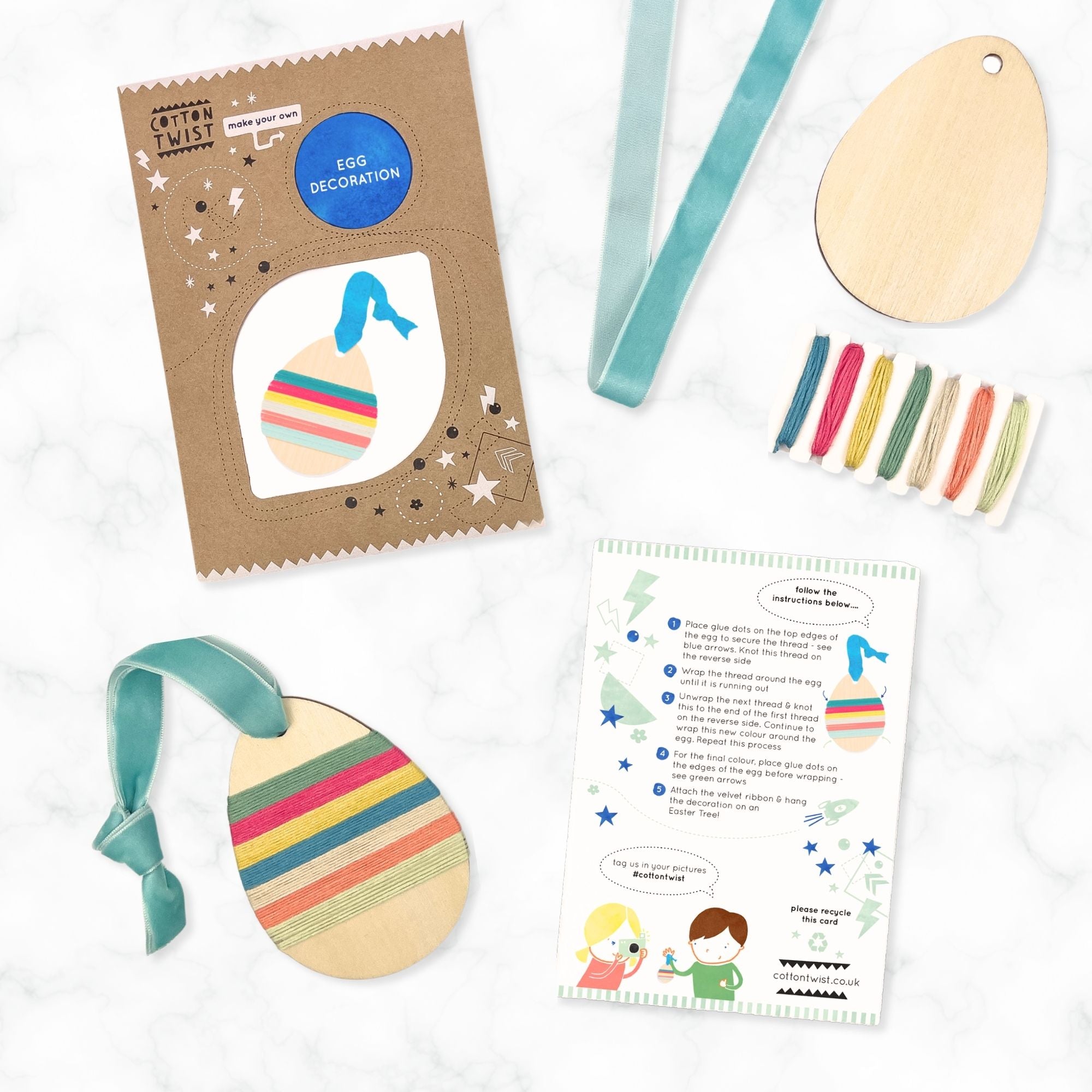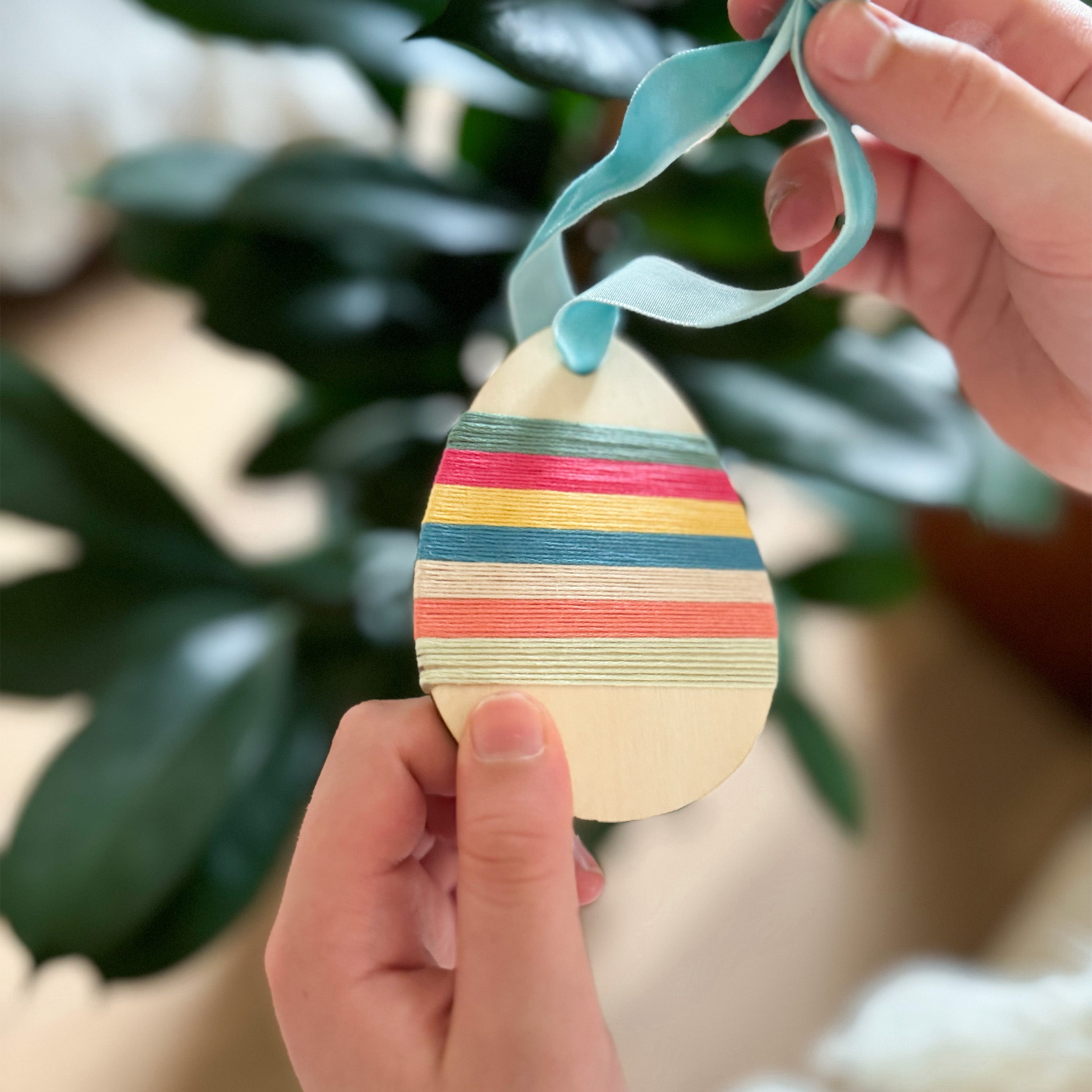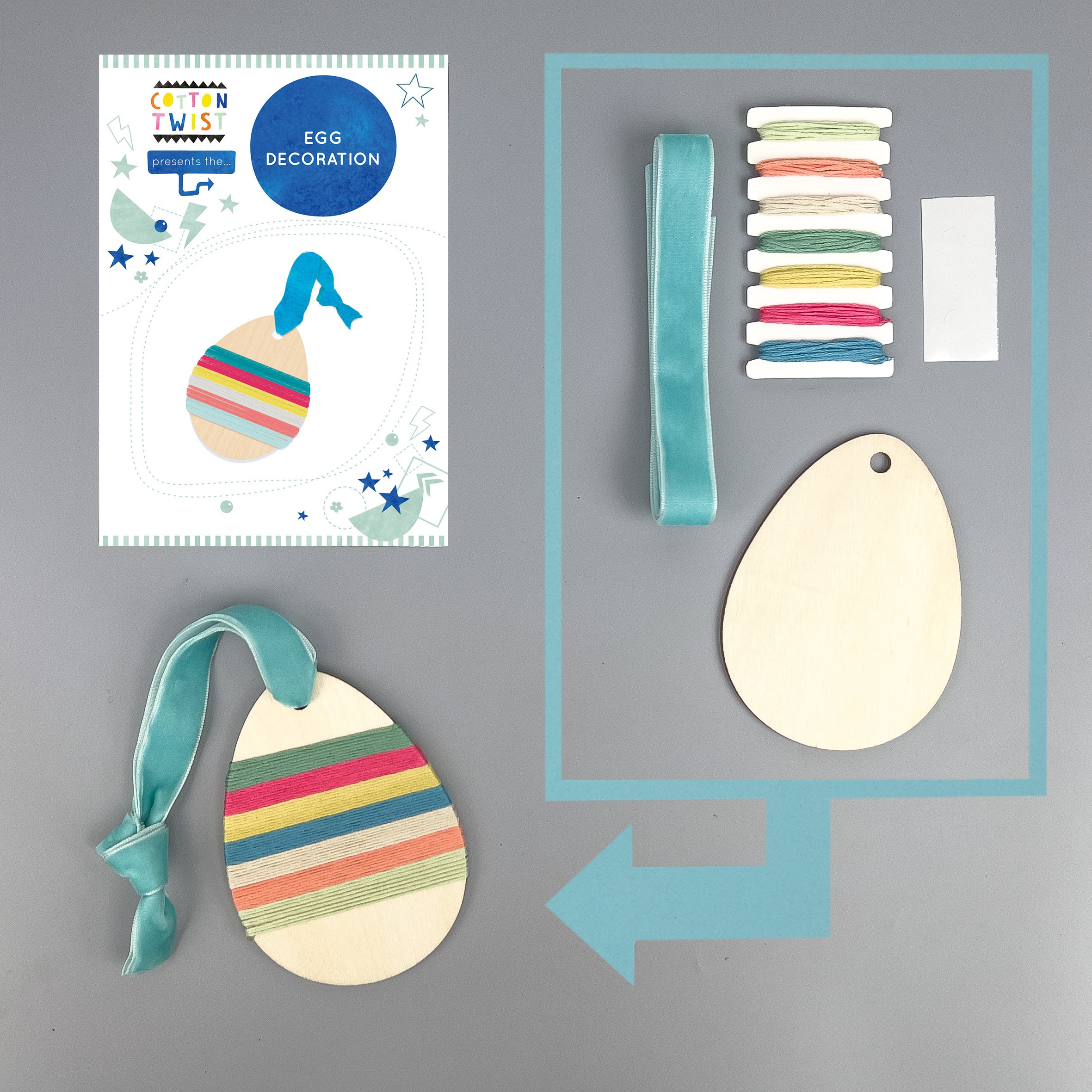 MATERIALS: wooden egg, velvet ribbon, cotton thread, glue dots. UKCA/UKNI/CE tested