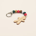MATERIAL - maple wood gingerbread fob, spherical beads, keyring link, elastic with metal ends