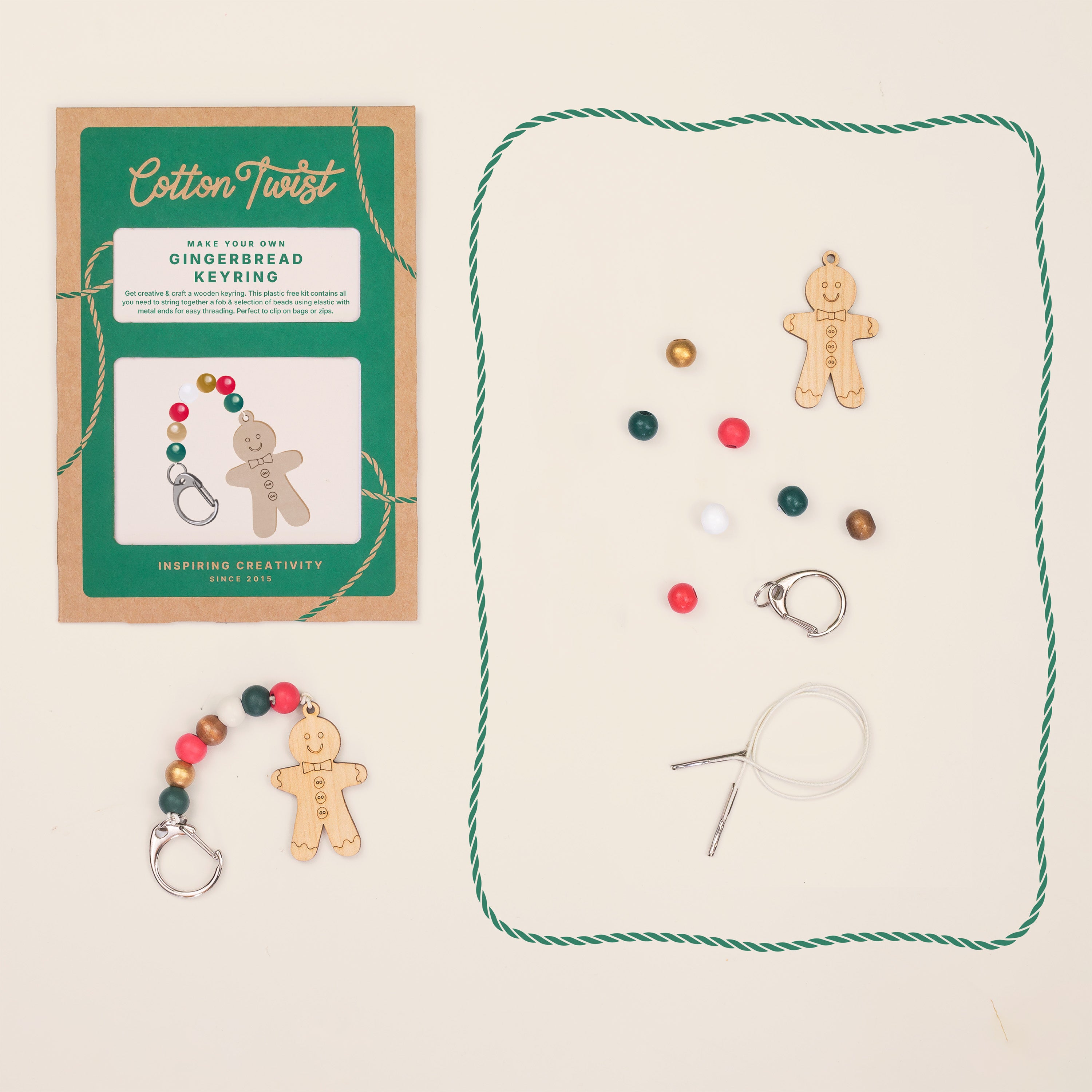 Perfect for three years and upwards, children can make their gingerbread keyring using the maple wood fob, elastic and spherical beads provided. The elastic comes with metal ends to help children add beads with ease, and the keyring mechanism has a simple catch. Attach your gingerbread keyring to bag or your clothes for a fun accent.