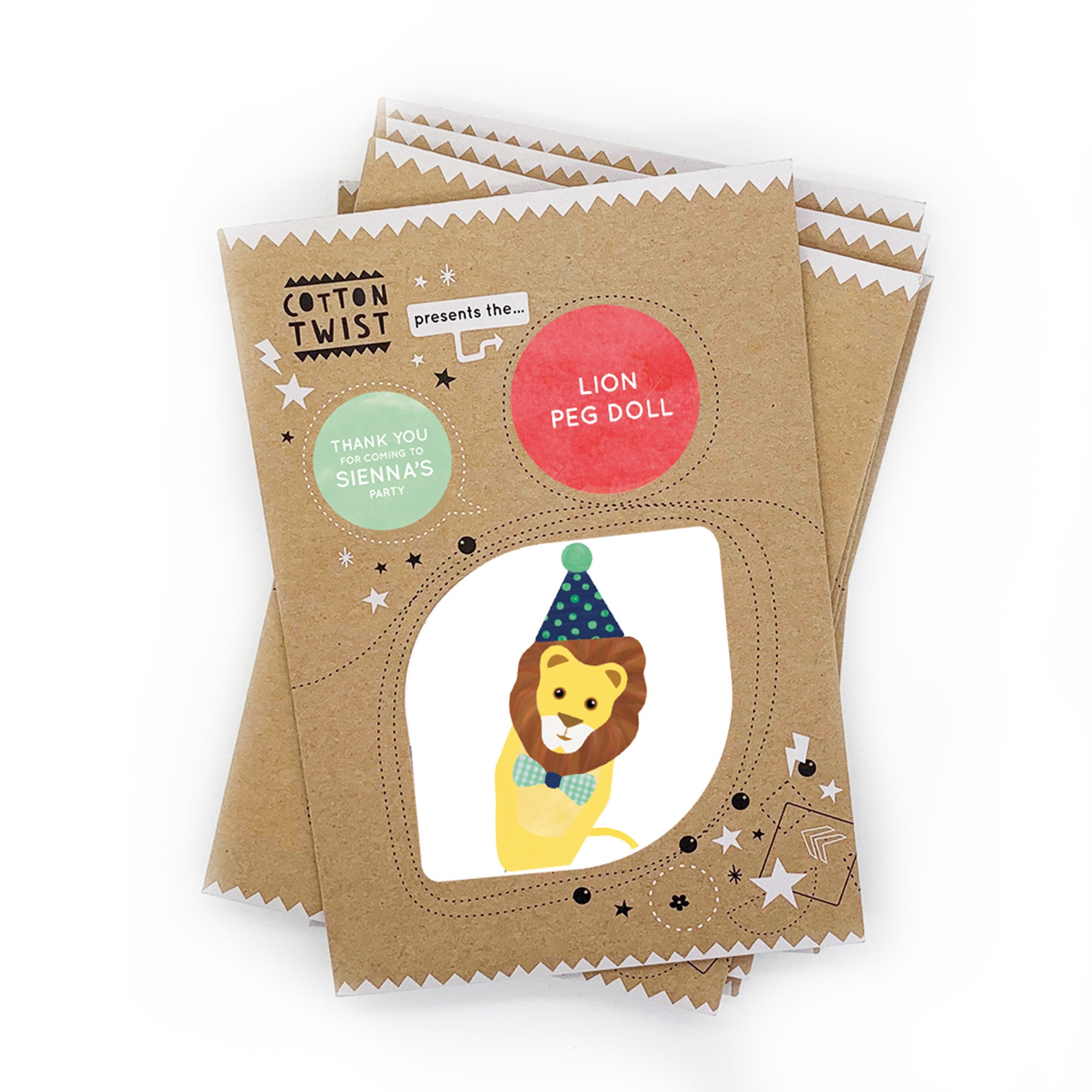 If bought in bulk for a party, there is an additional option to add personalised stickers to the outside of the kraft envelope - see images.