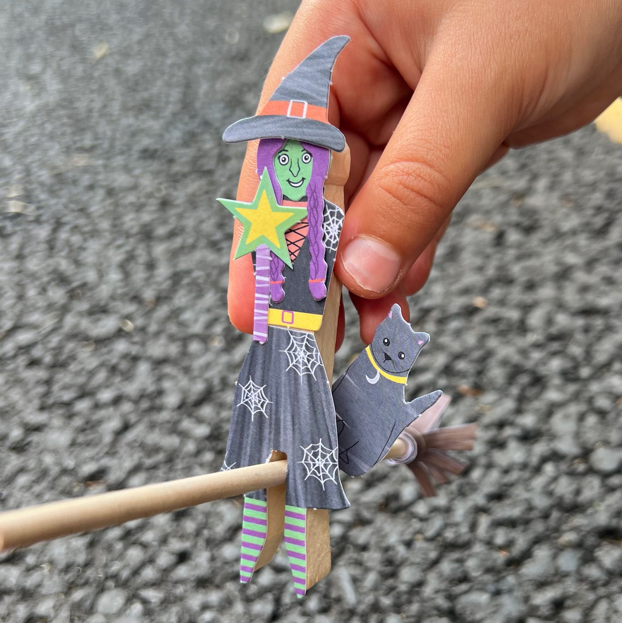 Children love to create, and this witch peg doll is fun to make and sparks imaginative play. Gently push the pre-cut shapes out from the sheets, then choose the accessories you love the most. The witch peg doll comes with a skirt, top, broom, wand, cat and hat. Stick the chosen items onto the peg with the glue dots provided to create your witch peg doll and enjoy the spooky fun!