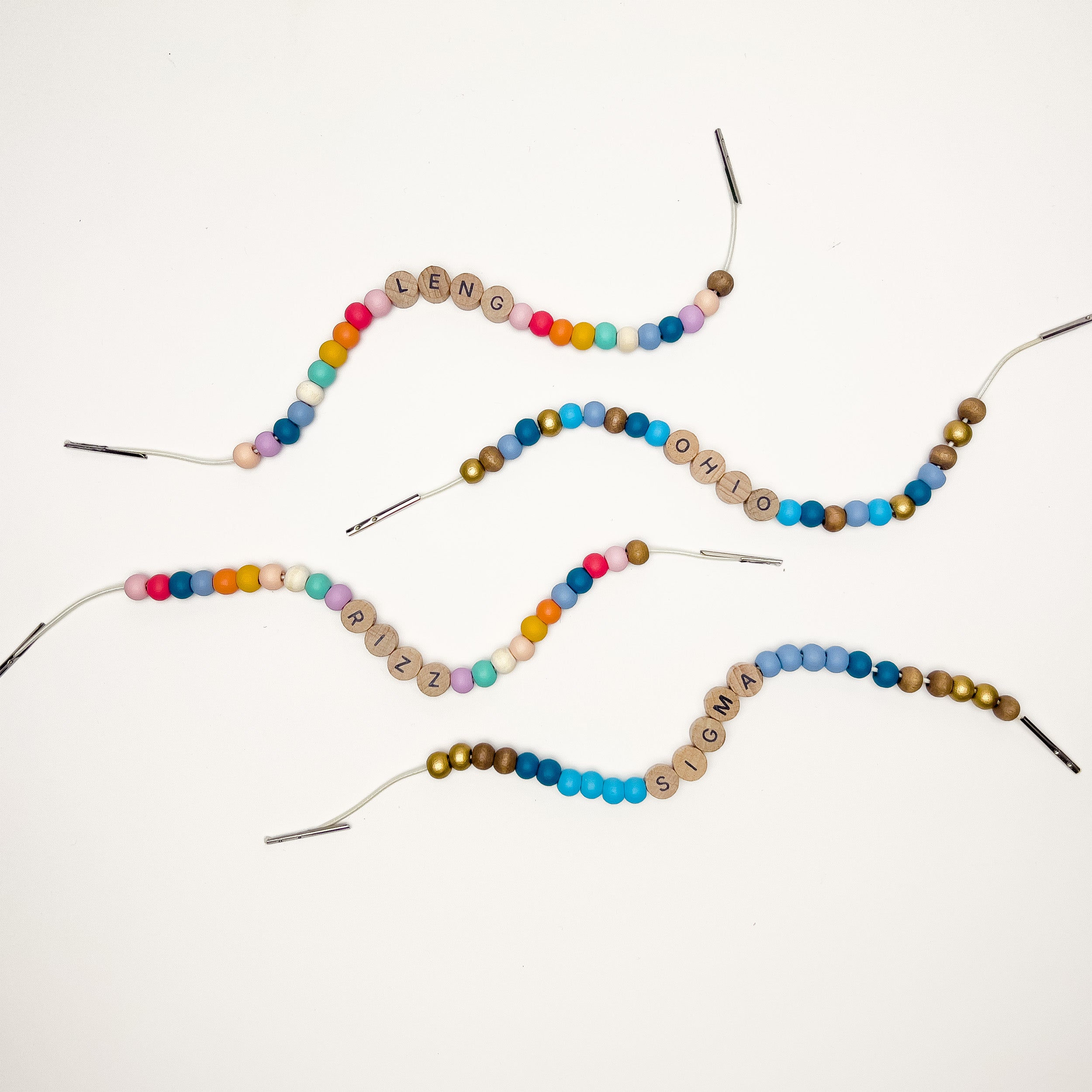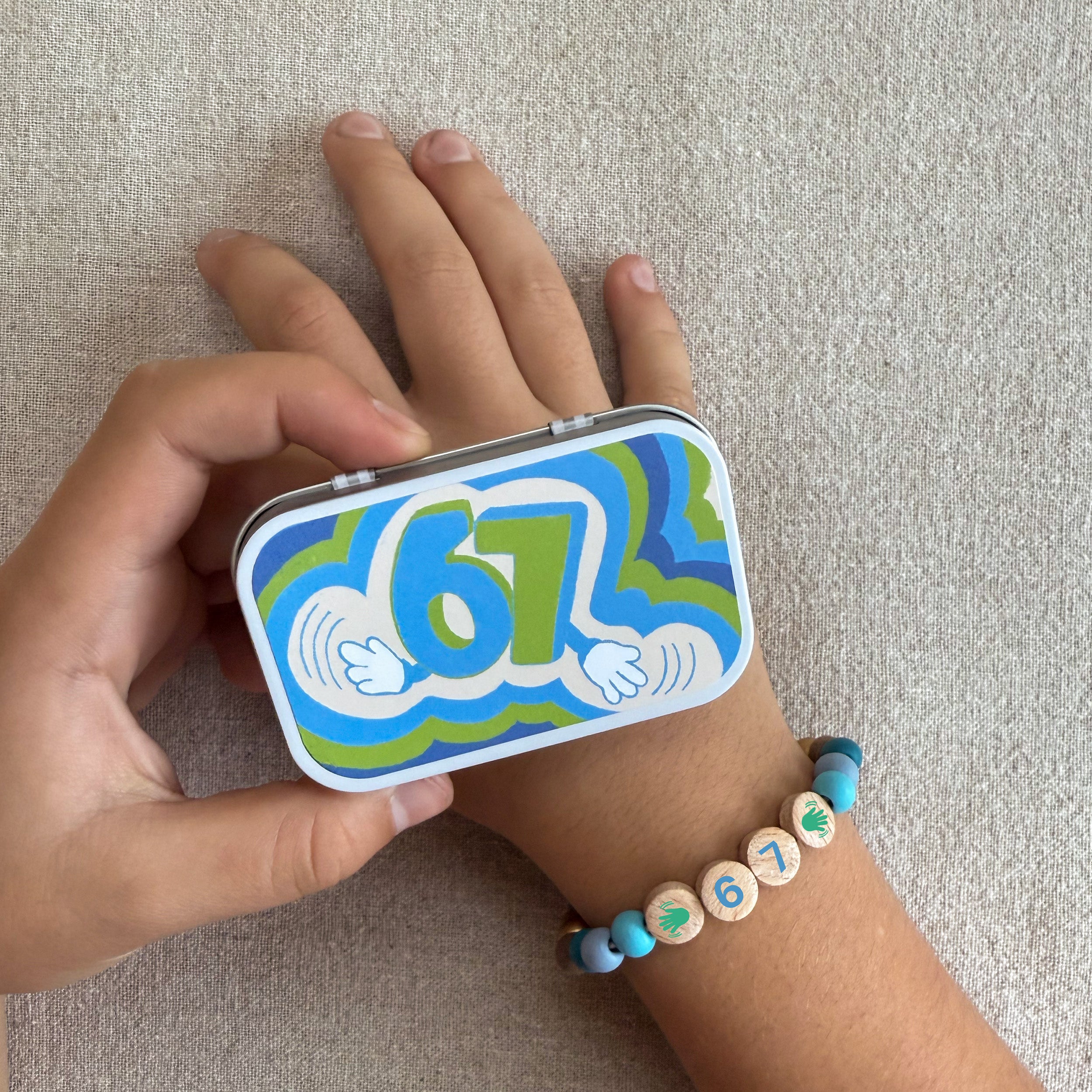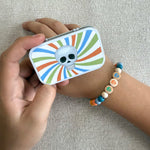 2) Pair your tin with an optional bracelet featuring matching printed letters or symbols, so you can carry your favourite slang with you everywhere.