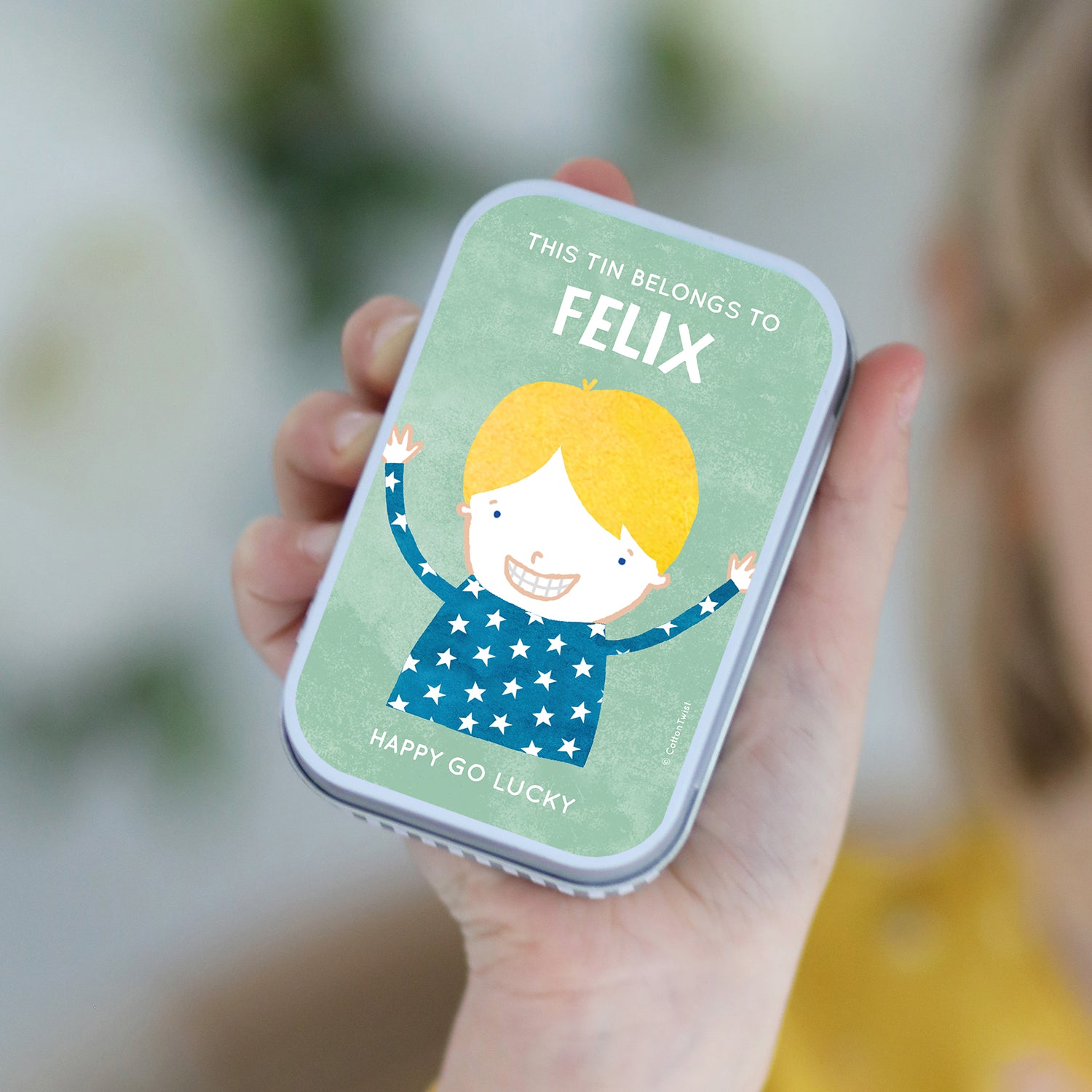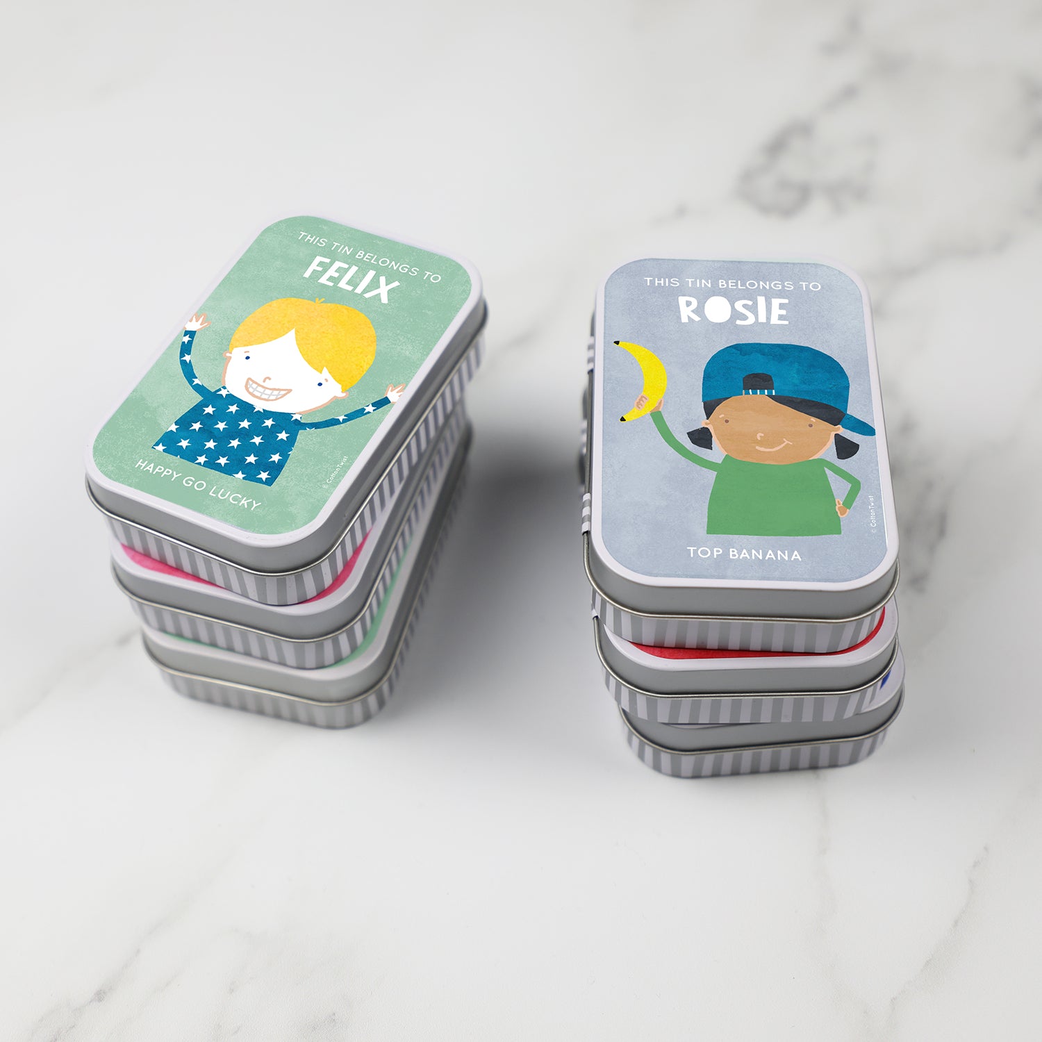 A lovely gift for a party bag filler, a stocking filler, or just because. This personalised tin is a perfect little hideaway for a little person's treasures, tickets, stickers, or cards.