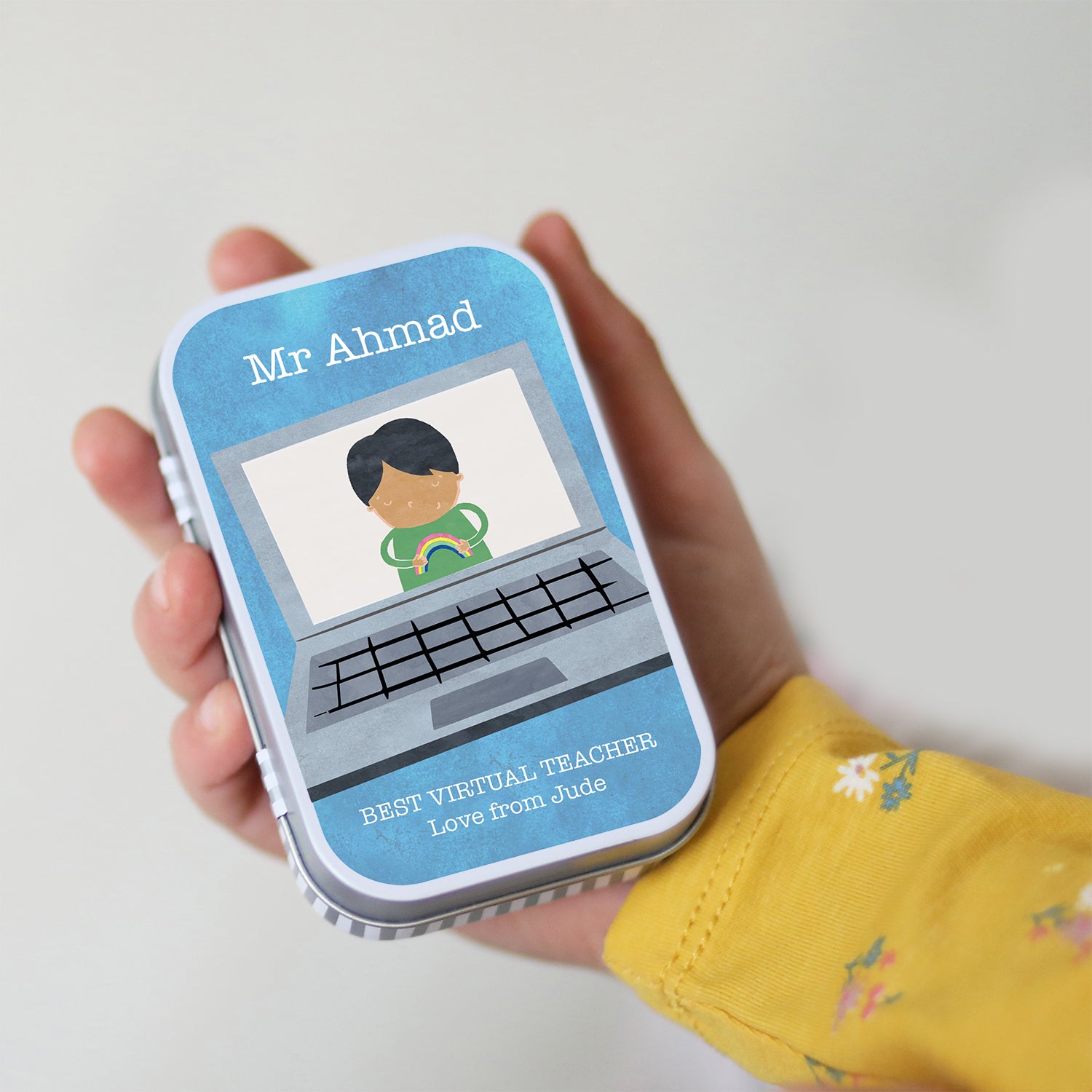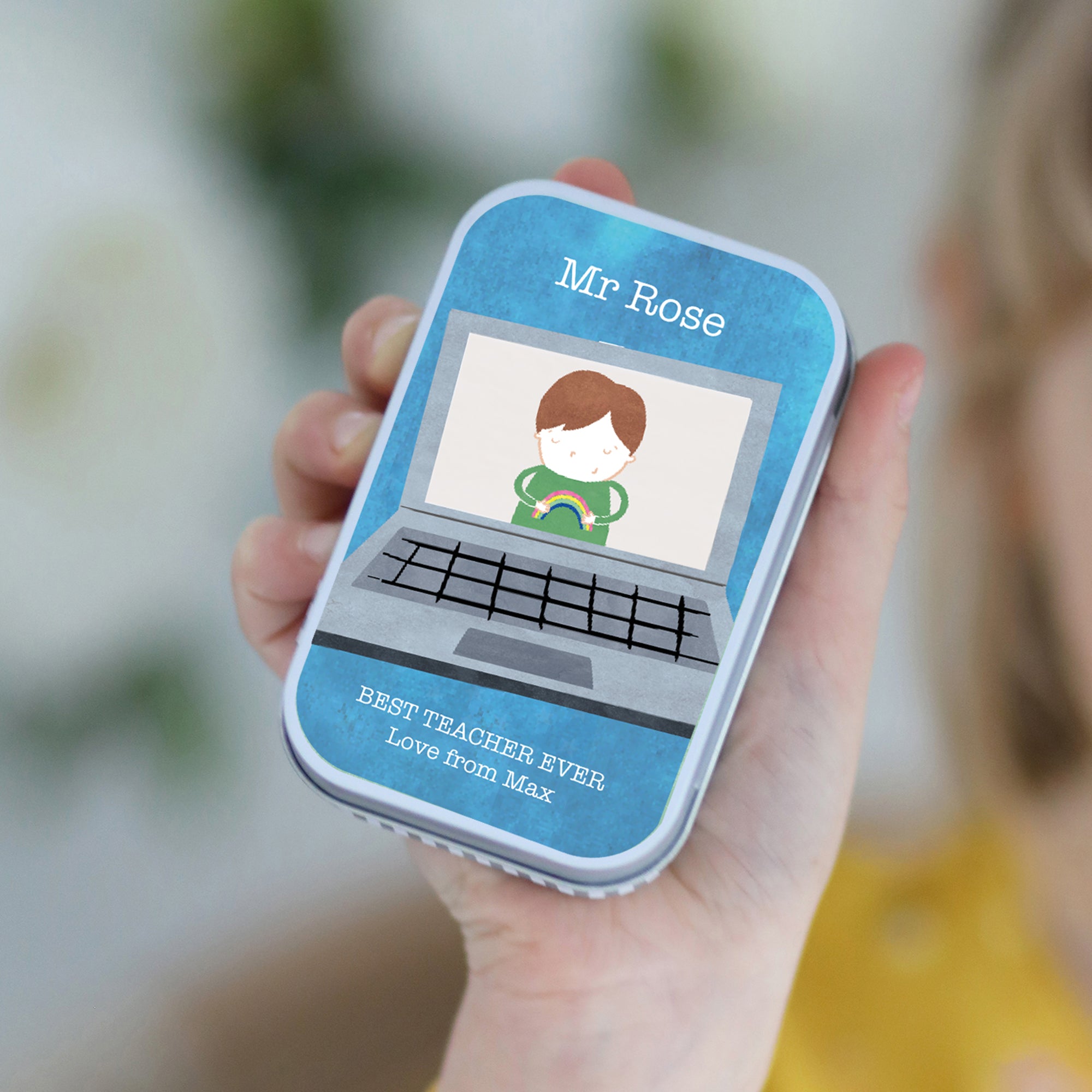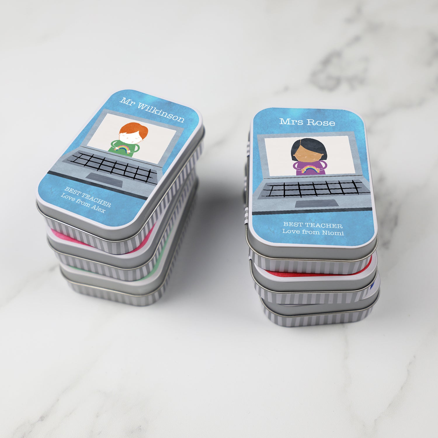 This Lockdown edition of the personalised teacher keepsake tin comes in four illustrated themes & has been designed to mark the momentous efforts teachers have made throughout the year. Has your child been in school, or have they received live lessons online? Each teacher is holding a rainbow to demonstrate their patience, attention & care. A lovely gift to thank the teachers in your lives. This personalised tin is a perfect little hideaway for a teacher's stickers, stamps, or treats.