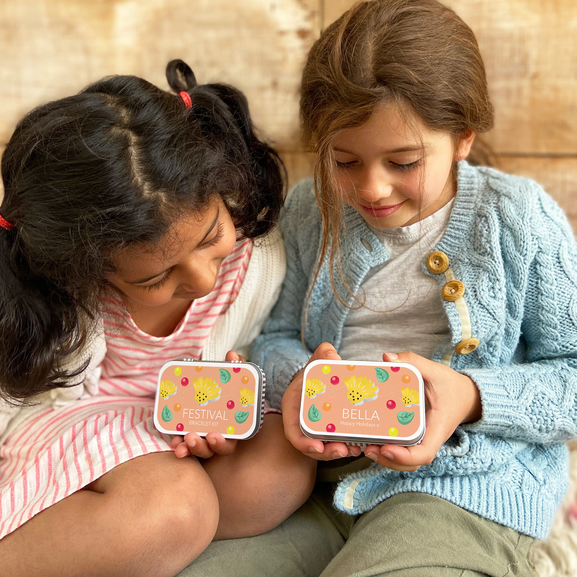 A beautiful personalised gift tin containing elastic & beads to create this festival bracelet, perfect for the festival of Diwali. The elastic comes with metal ends to aid the beading process for young children. Then, patience & precision are all that's required to assemble this piece.
