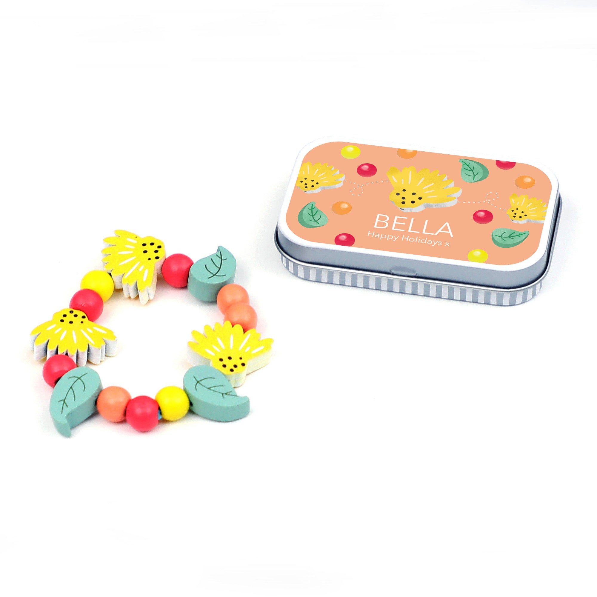 The tin can be used to store the bracelet, or a special trinket. They are also perfect as wedding day activities, party bag fillers, stocking fillers & gifts for flower girls.