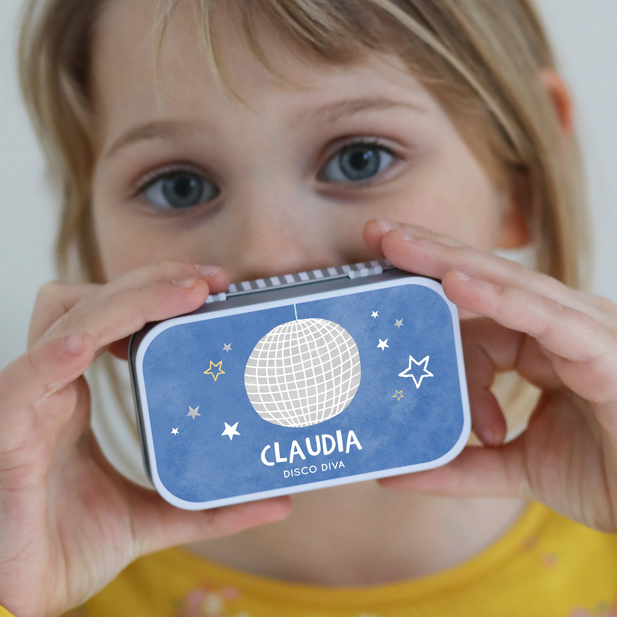 A lovely present for a birthday, a stocking filler, or gifting as a party bag present, this personalised tin is a perfect little hideaway for a little person's treasures, tickets, stickers, or cards.
