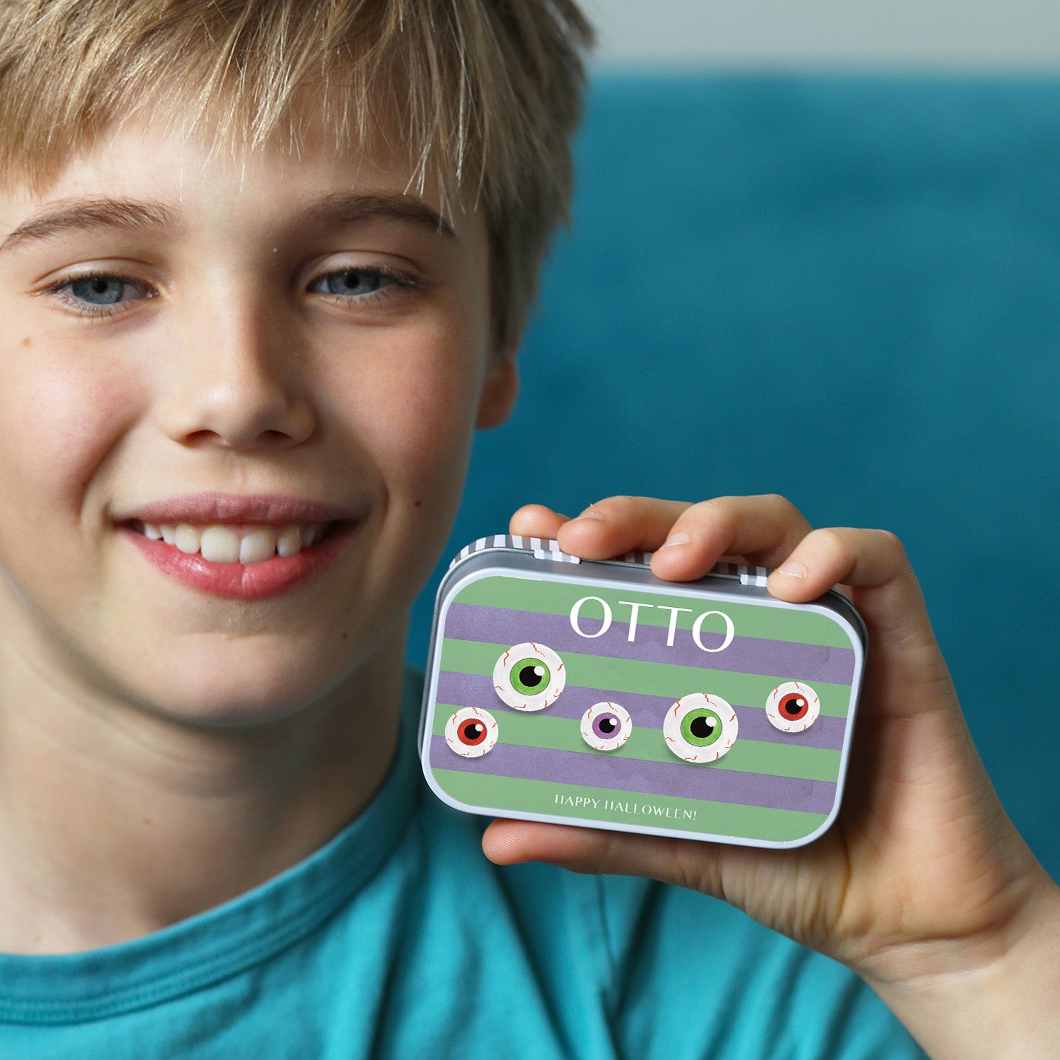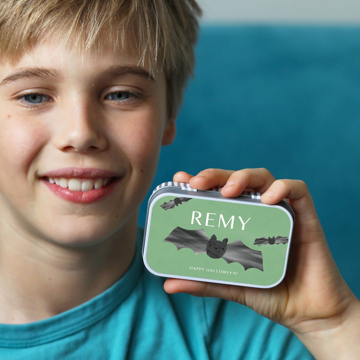 Each personalised trick or treat tin can be in your chosen theme, together with the name and personalised message. Perfect spooky favours and Halloween party bag fillers!