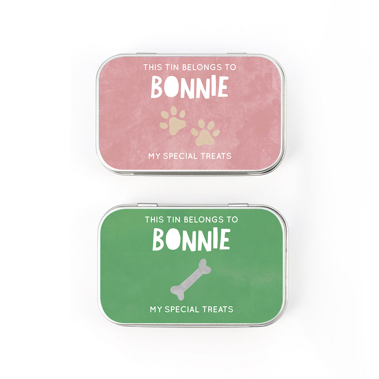 Personalised keepsake tins in four illustrated themes - perfect for pet treats!