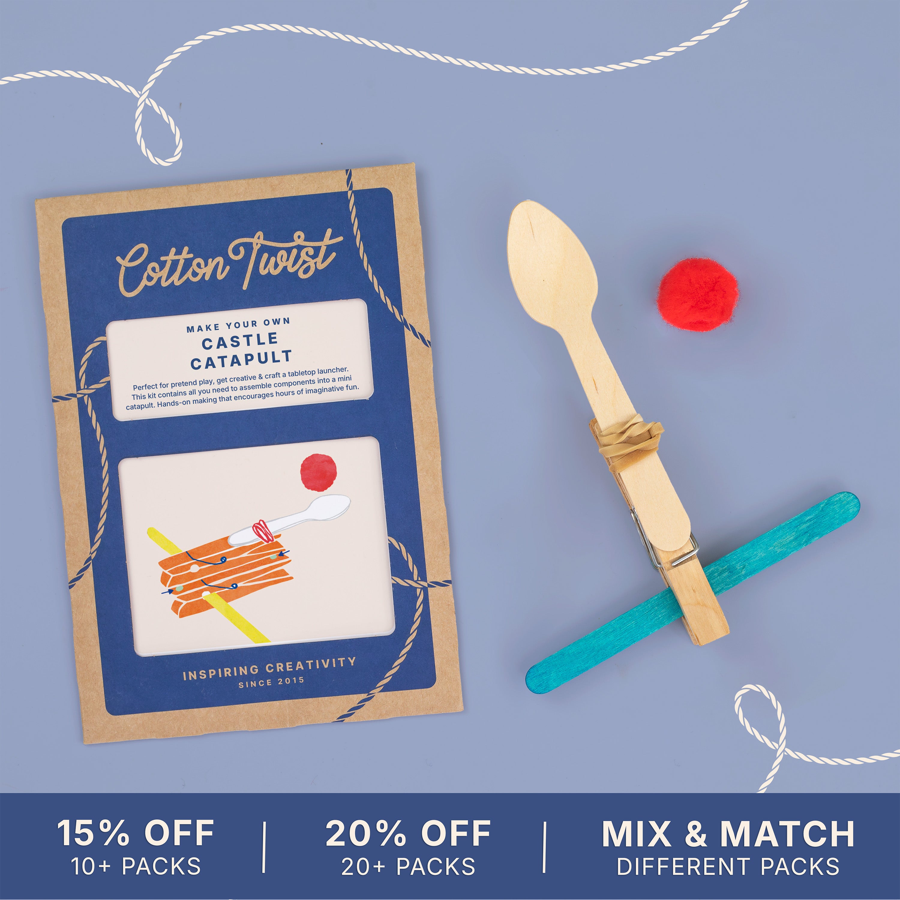 Easy enough for anyone 5+ to put together and a lot of fun catapulting Pom poms around the house! Beats plastic tat by a mile!