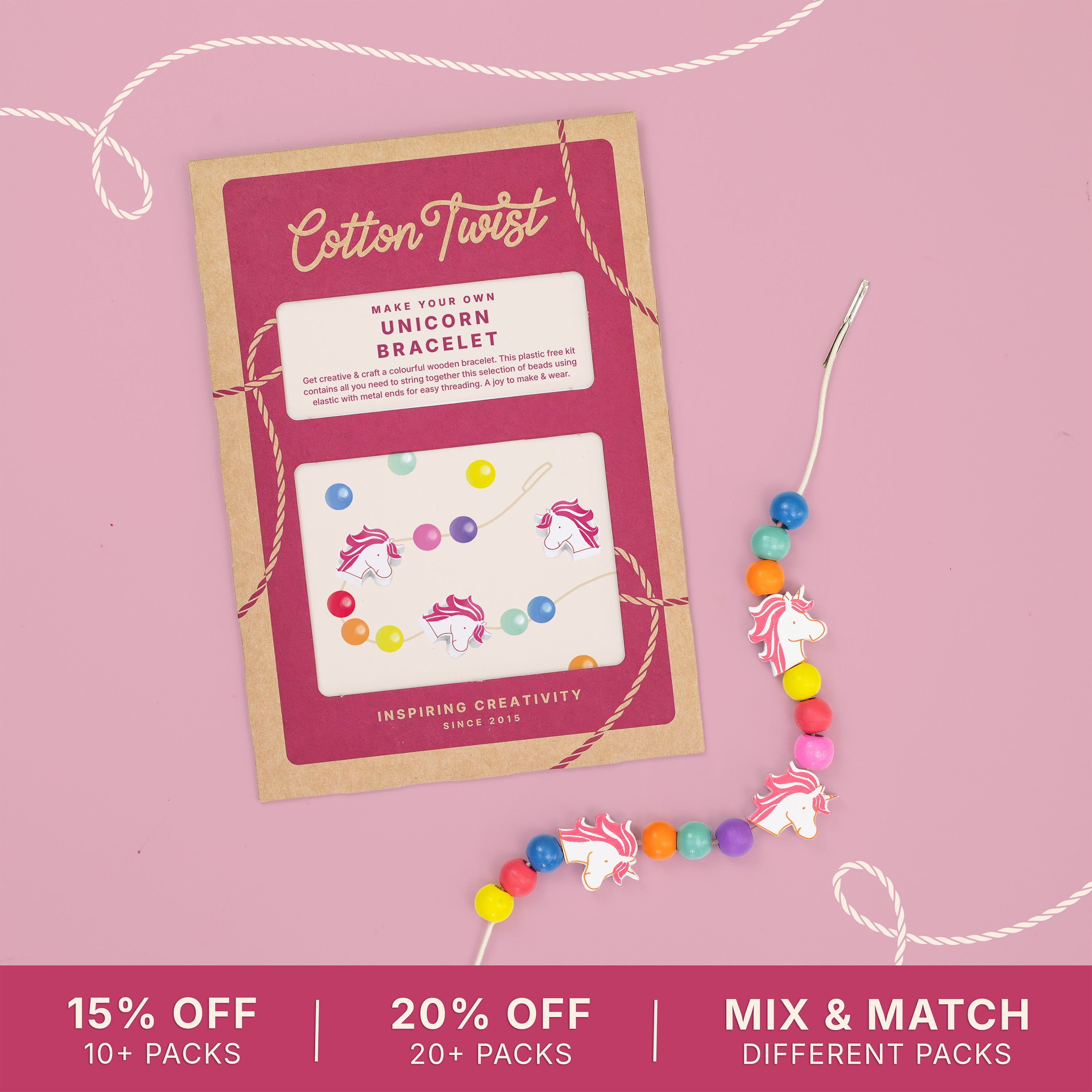 Perfect for three years & upwards, this sustainable unicorn bracelet making kit would be perfect for a Unicorn Party. Cotton Twist craft activities are often gifted as party bags, birthday presents, stocking fillers or rainy day activities.
